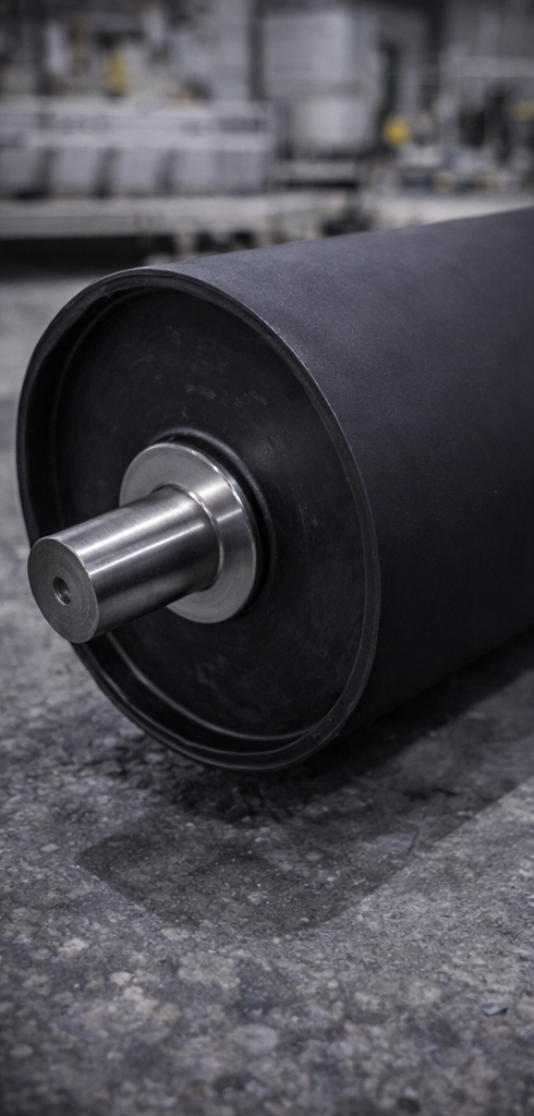 Prin aplicarea unui strat de cauciuc, tamburii funcționează mai eficient și reduc uzura atât a benzii transportoare, cât și a echipamentului.
